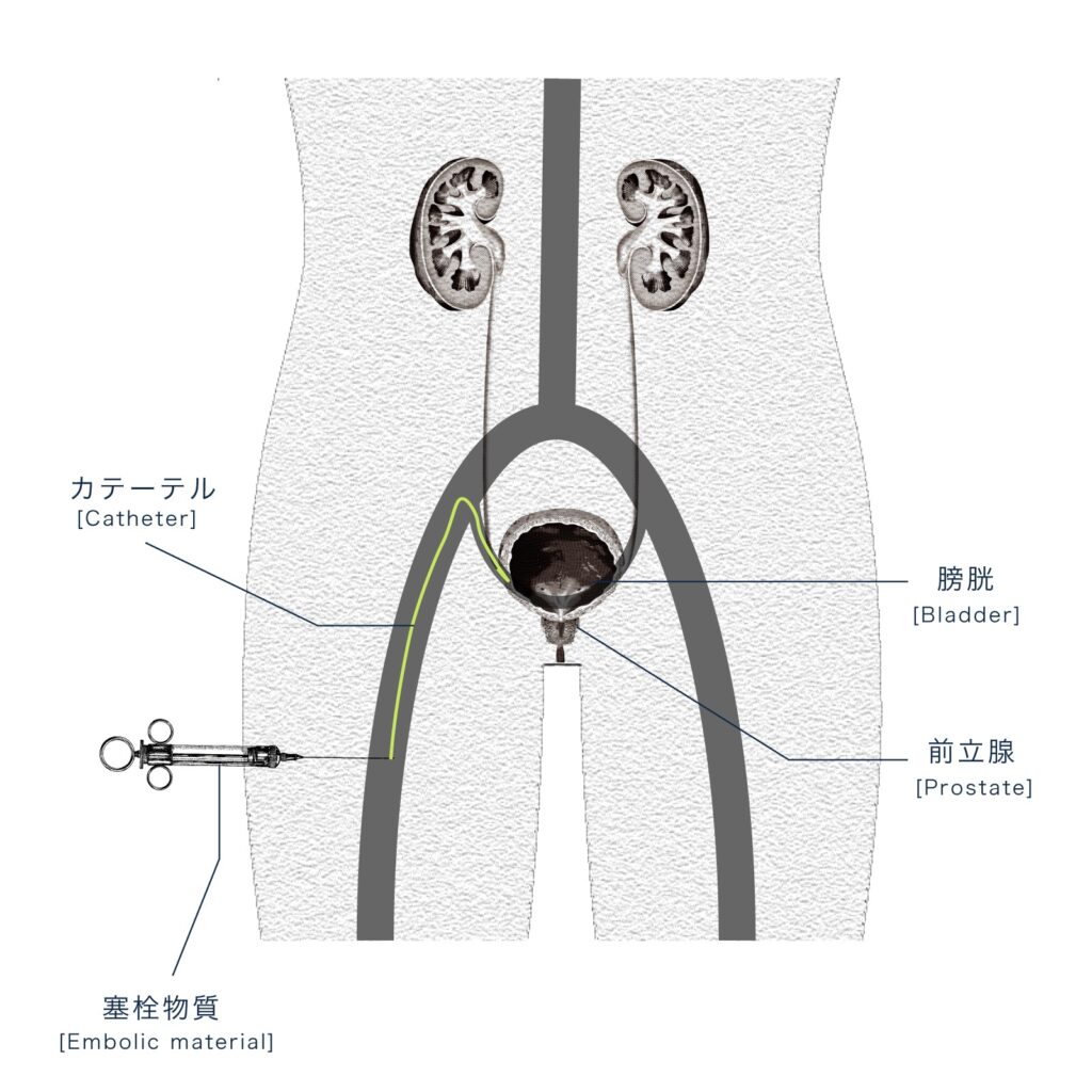 そこで近年、新たな選択肢として確立されてきたのが「前立腺動脈塞栓術(PAE:Prostatic Artery Embolization)」と呼ばれるカテーテル治療です。